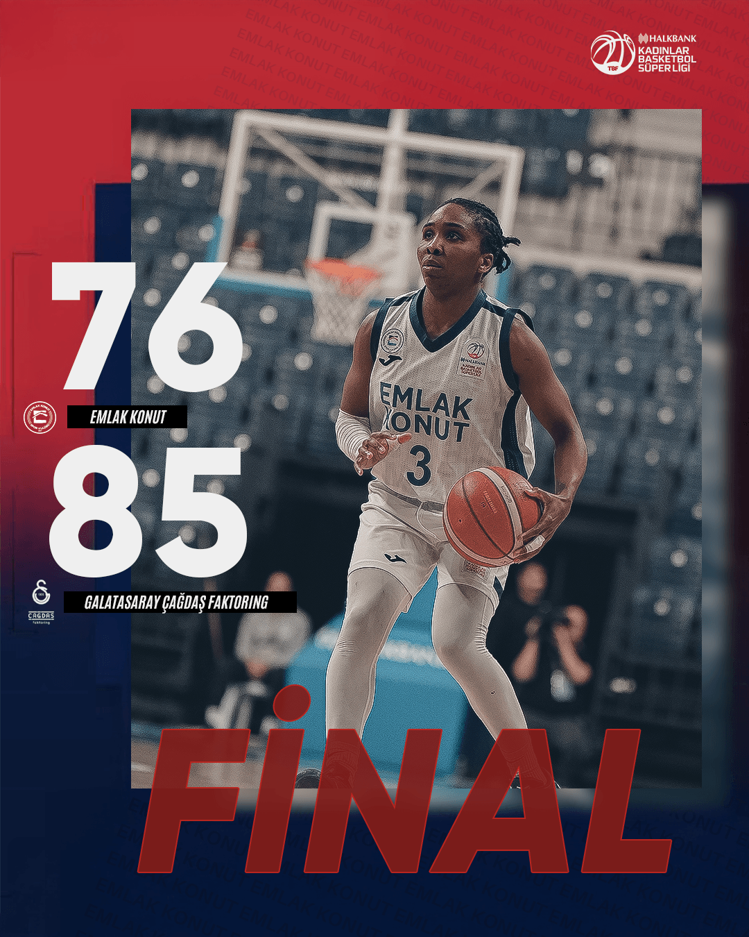 Kadınlar Basketbol Süper Ligi 2025-2026 sezonu Play-Off karşılaşmasında Emlak Konut, Başakşehir Spor Kompleksi’nde Galatasaray Çağdaş Faktoring’i konuk etti. Büyük çekişmeye sahne olan mücadelede temsilcimiz, sahadan 85-76’lık skorla ayrıldı.