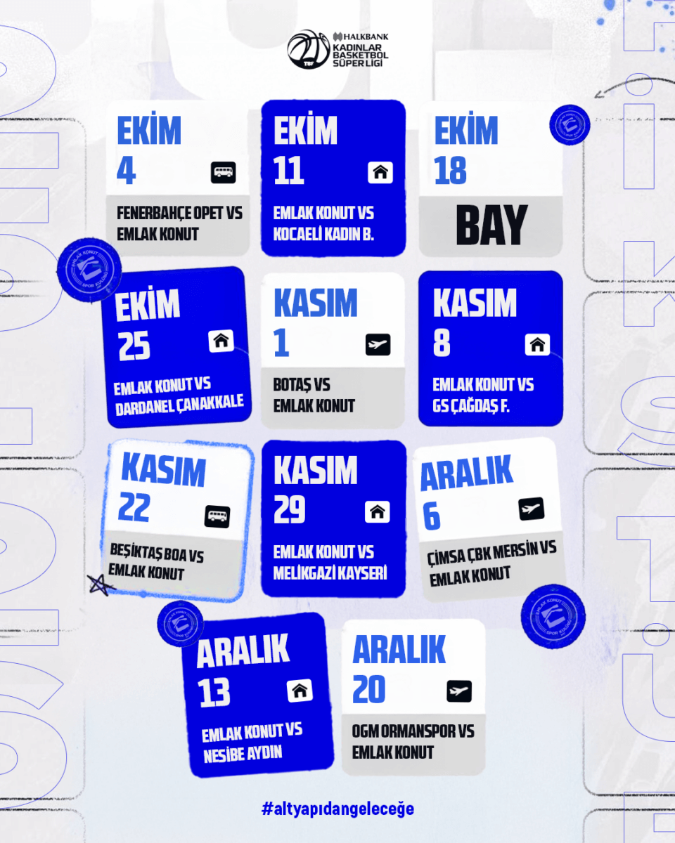 Yapılan kura çekimi sonrası Emlak Konut Spor Kulübümüzün 2025-2026 sezonu ilk devre maç programı şu şekilde belli oldu: