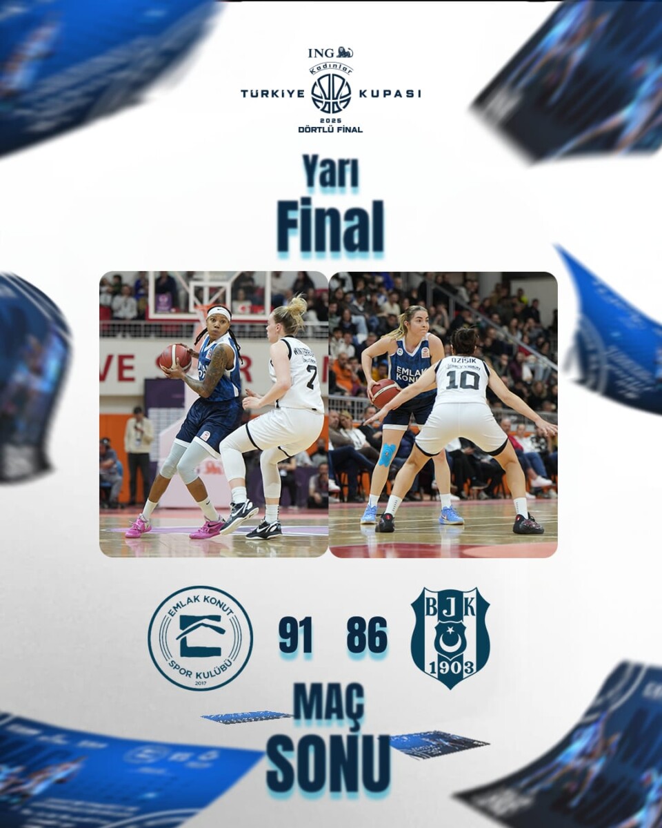 Emlak Konut Kadın Basketbol Takımımız, Türkiye Kupası’nda finale yükselme başarısı gösterdi. Murat Alkaş’ın öğrencileri 21 Mart Cuma günü saat 20:30’da Edirne’de Yeni Kapalı Spor Salonu’nda Beşiktaş ile karşılaştı. Emlak Konut Kadın Basketbol Takımımız sahadan 91-86 üstün ayrıldı ve Türkiye Kupası finalinde ÇBK Mersin’e rakip oldu.